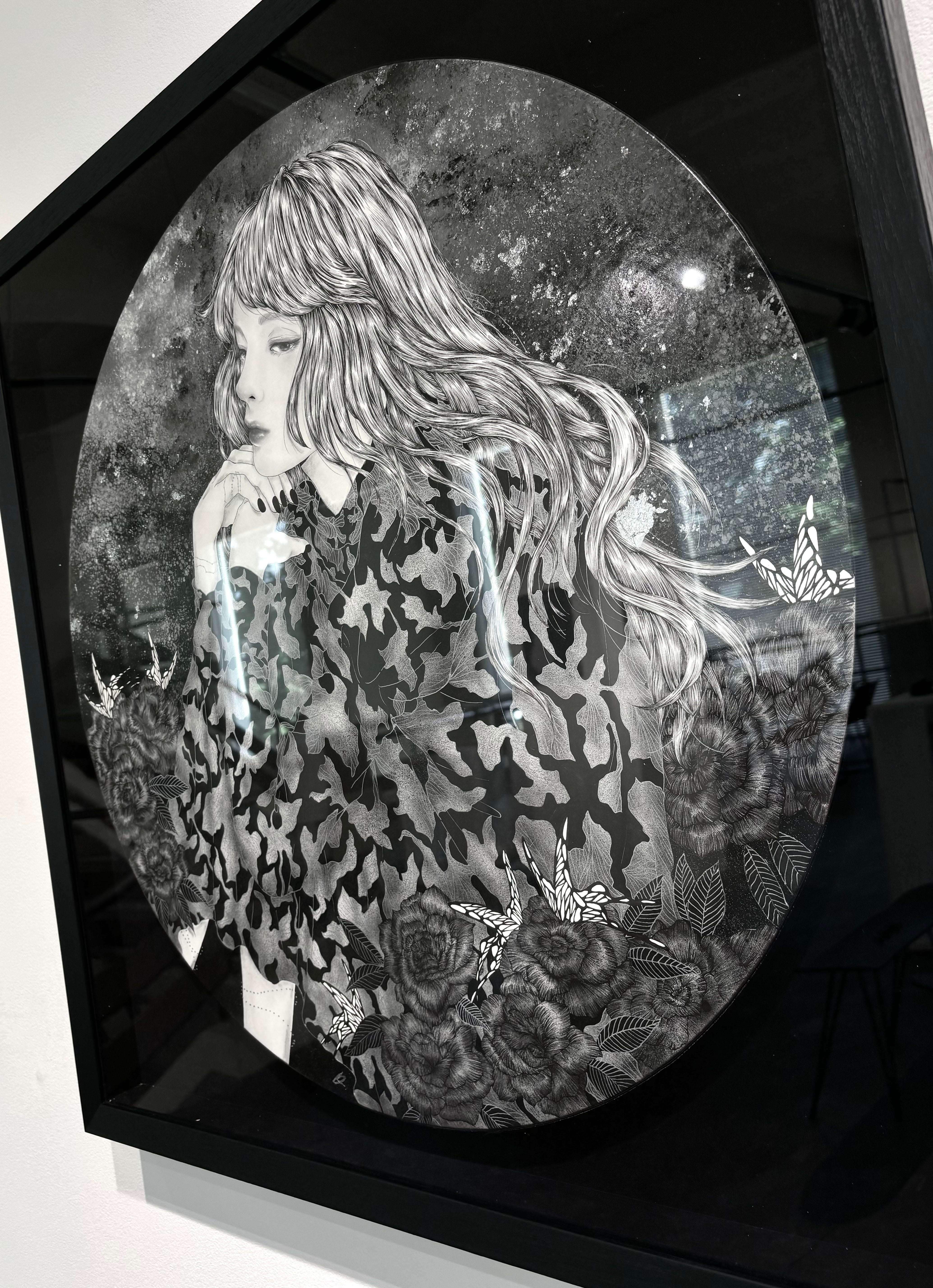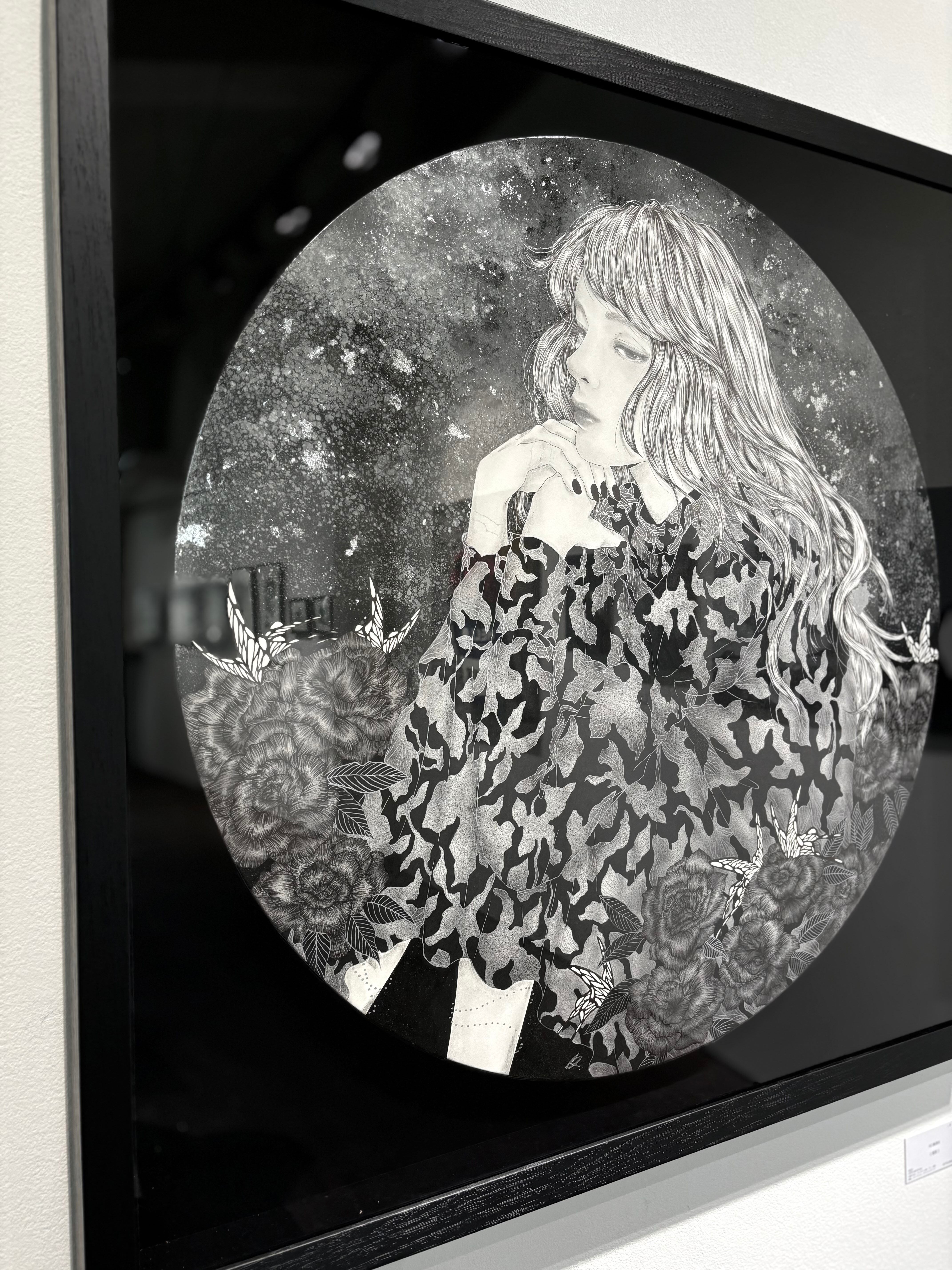 マテリアル:木製パネル / ヴィフアール紙 / ペン/ 鉛筆 / アルミ箔/ヴィトラーユ / アクリリックインク